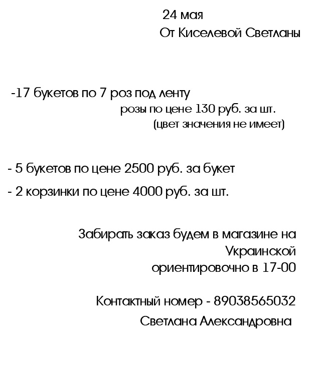 Здравствуйте! выложите пример заполнения заявки на цветы для последнего звонка