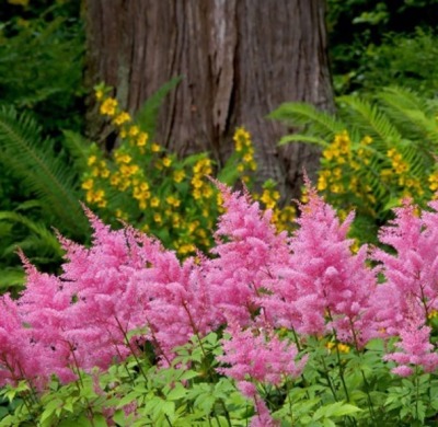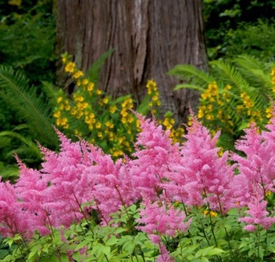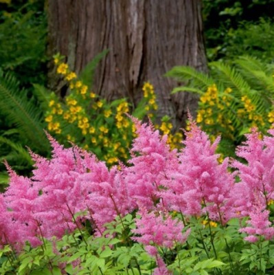 Цветоводы ценят астильбу за длительное, пышное цветение, теневыносливость и стойкость к высокой влажности грунта.